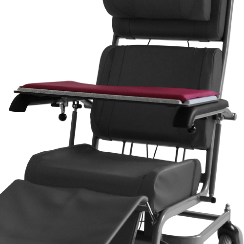 Die hochwertige Polsterung unterstützt die Dekubitusprophylaxe und bietet den Patienten und Bewohnern einen bequemen Sitzkomfort.