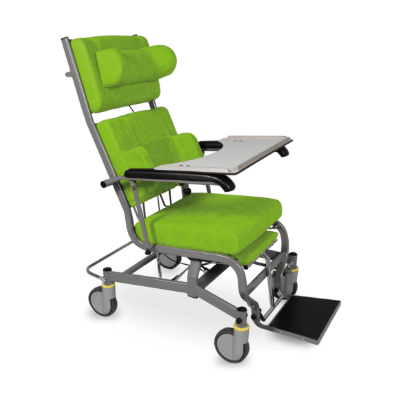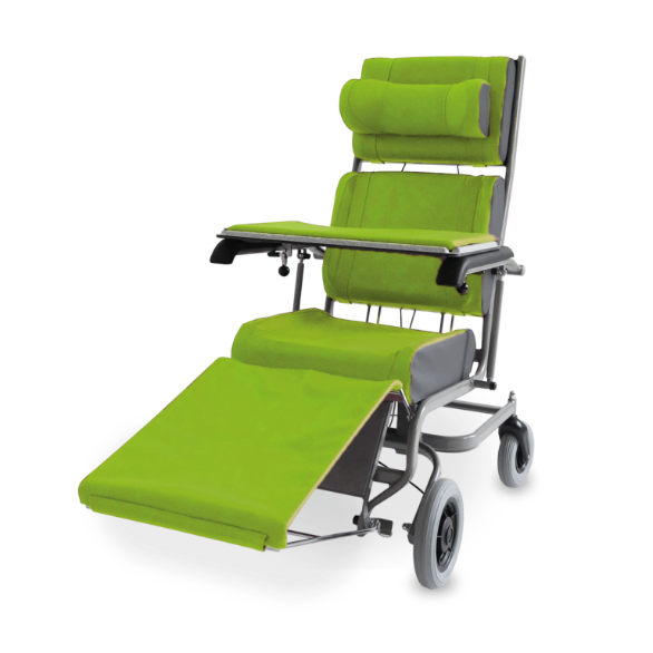 Die stufenlose Neigungsverstellung erlaubt unterschiedliche Sitzpositionen und die sichere Unterstützung der Patienten und Bewohner beim aktiven Aufstehen.